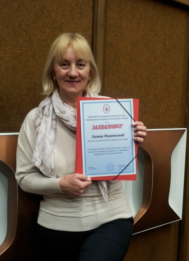 Dana 25.04.2014. Savez udruženja zdravstvenih radnika Beograda u okviru Republičkog Simpozijuma „Novi pogledi“ dodelio je na osnovu strogo propisanih kriterijuma (izuzetna aktivnost kako u radnoj organizaciji tako i u profesionalnoj asocijaciji i doprinos profesionalnim i etičkim stavovima u smislu unapređenja profesije )priznanje „Srebrni znak“ Saveza udruženja zdravstvenih radnika Beograda.Uskršnji koncert
