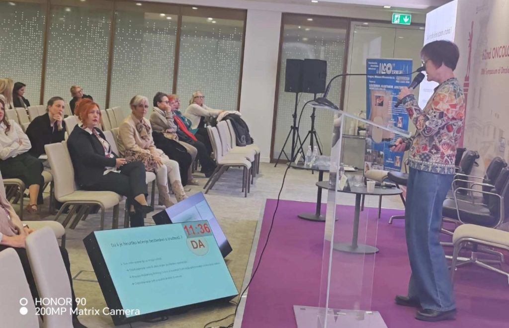 Значај квалитетне комуникације између пацијенткиња и здравствених радника представила је Сара Бојанић, комуниколог из удружења Европа Дона Србија – Српског форума против рака дојке. У свом излагању нагласила је да комуникација има кључну улогу у исходу лечења, задовољству пацијенткиња и њиховој здравственој писмености.