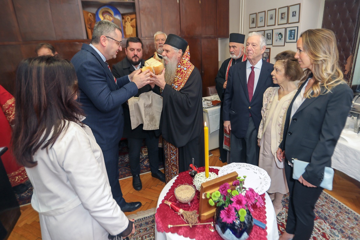 Освећењу славских дарова присуствовали су Његово Краљевско Височанство принц престолонаследник Александар Карађорђевић, Њено Краљевско Височанство Принцеза Катарина, снаха, Њено Краљевско Височанство Принцеза Весна, Председник Надзорног одбора Доц. Данијел Галун као и здравствени радници Института.